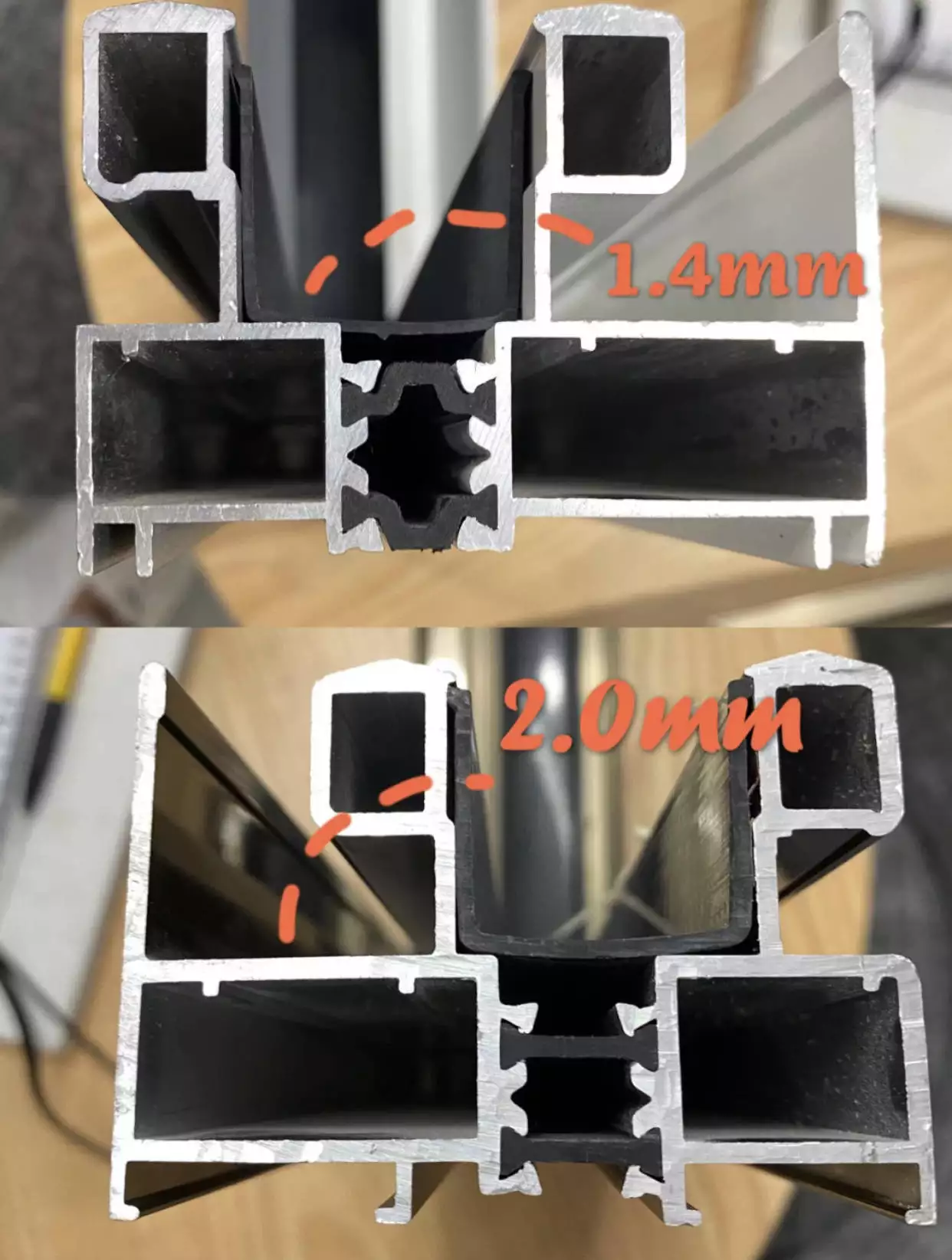 國家標準明確規定,外窗型材厚度不應小于1.8毫米,內窗型材厚度不應小于1.4毫米。